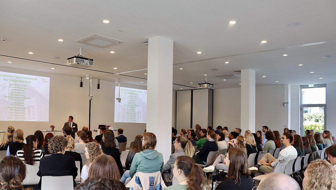 An die 130 Neuapprobierte informierten sich am 13. September 2025 am „Tag der Neuapprobierten“ in der Geschäftsstelle der Psychotherapeutenkammer Nordrhein-Westfalen über ihre berufliche Selbstverwaltung und das Versorgungswerk der Kammer. Weitere Themen waren die Zulassung zur vertragspsychotherapeutischen Versorgung und Hinweise für Berufstätigkeit in eigener Praxis oder in Anstellung.