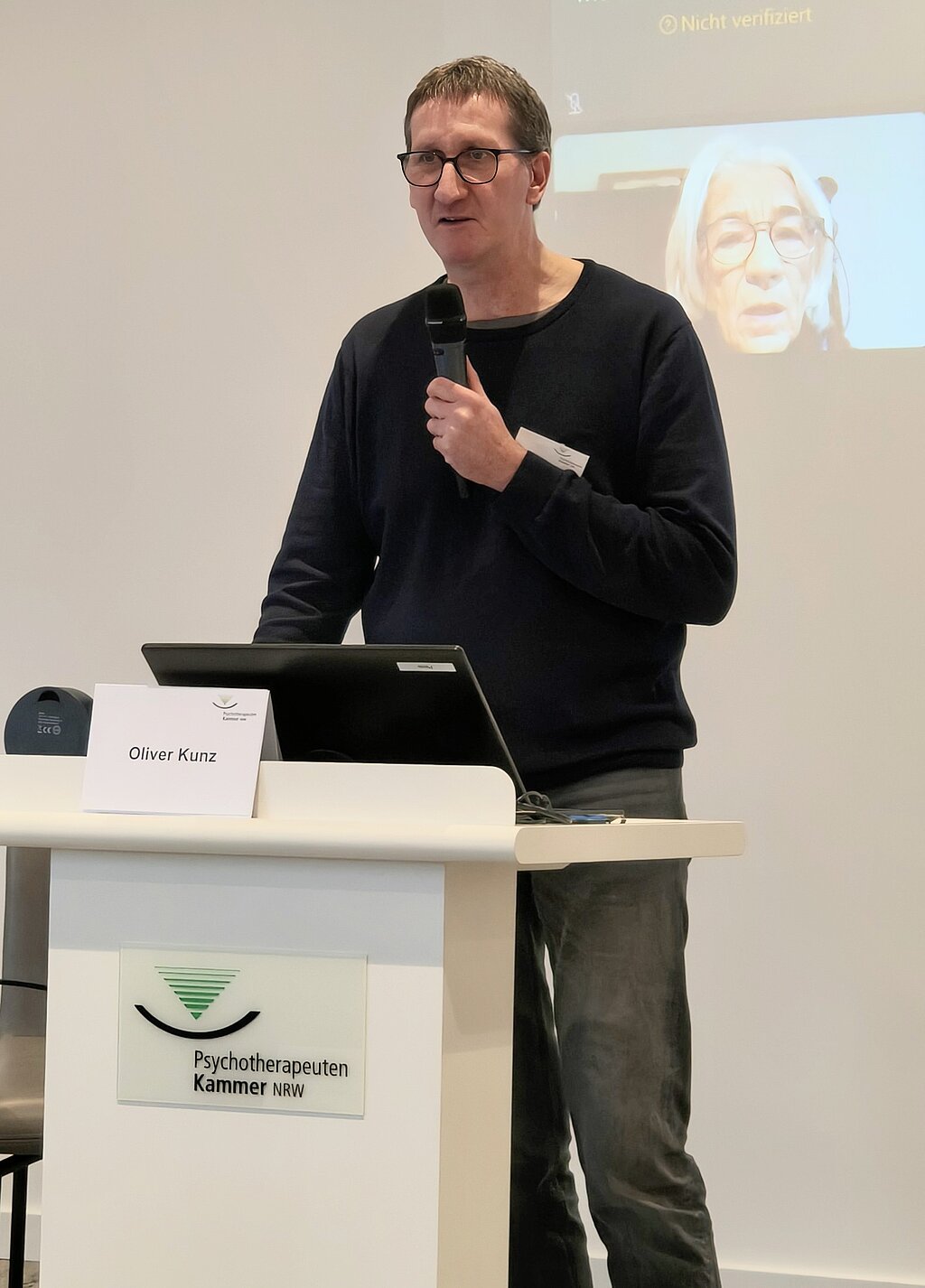 Zur Eröffnung betonte Vorstandsmitglied Oliver Kunz , KI sei zunächst einmal Technik – ein Werkzeug, das neue Möglichkeiten eröffne. Welche Folgen dies für die psychotherapeutische Versorgung habe, hänge davon ab, wofür KI genutzt werde: Sie könne helfen, Qualität zu verbessern und Behandelnde zu entlasten, aber auch entwickelt werden, um menschliche Therapeutinnen und Therapeuten zu ersetzen. KI beeinflusse das Verhalten vieler Hilfesuchender und gehöre bereits zum Alltag. Umso wichtiger sei es, dass die Profession diese Entwicklung aktiv mitgestalte. Technik könne Prozesse erleichtern – sie könne aber keine therapeutische Beziehung tragen.