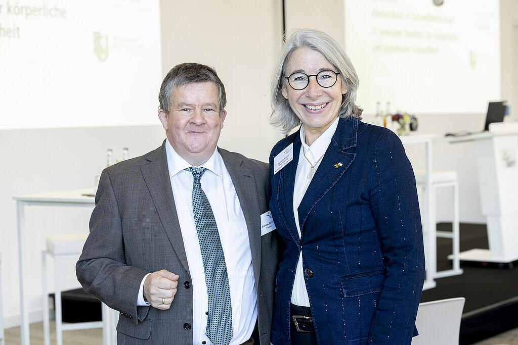Wie stark Klimapolitik, Gesundheitspolitik und gesellschaftliche Stabilität miteinander verknüpft sind, verdeutlichte Gerhard Herrmann, Leiter der Abteilung „Gesundheitsversorgung, Krankenversicherung” des Ministeriums für Arbeit, Gesundheit und Soziales des Landes Nordrhein-Westfalen (MAGS NRW), in seinem Grußwort. Er betonte, dass der menschengemachte Klimawandel keine abstrakte Bedrohung, sondern längst zur Realität geworden sei – spürbar in Hitzewellen, Extremwetter und den psychischen Belastungen einer durch Krisen verunsicherten Gesellschaft. Mit der Landesstrategie zur Klimaanpassung setze NRW darum deutliche Akzente beim Hitzeschutz, verankere Klimaschutz im neuen Gesetz über den öffentlichen Gesundheitsdienst des Landes Nordrhein-Westfalen (ÖGDG NRW) und fördere die Zusammenarbeit unterschiedlicher Institutionen. Gesundheitsschutz, so hielt Gerhard Herrmann fest, sei Daseinsvorsorge – und Klimapolitik ihre Basis.